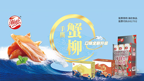 海欣休闲系列产品为国内鱼糜制品行业首家上市公司海欣食品(002702)旗下全资子公司东山腾新食品有限公司于2015年研发上市的即食休闲鱼制品,当年实现销售收入6297.54万元,营收占比达7.73%。海欣强势进军市场容量更加巨大的即食休闲产品市场,凭借海欣强大的技术研发实力、完整的产业链、全自动化的生产设备、专业的销售团队及全方位的营销支持,陆续推出了海欣系列、蟹泡泡系列、鼓山系列等创新产品。以远洋鱼肉为基础,进行精工细作,保证产品的良好口感,给消费者带来高品质的欢乐享受。